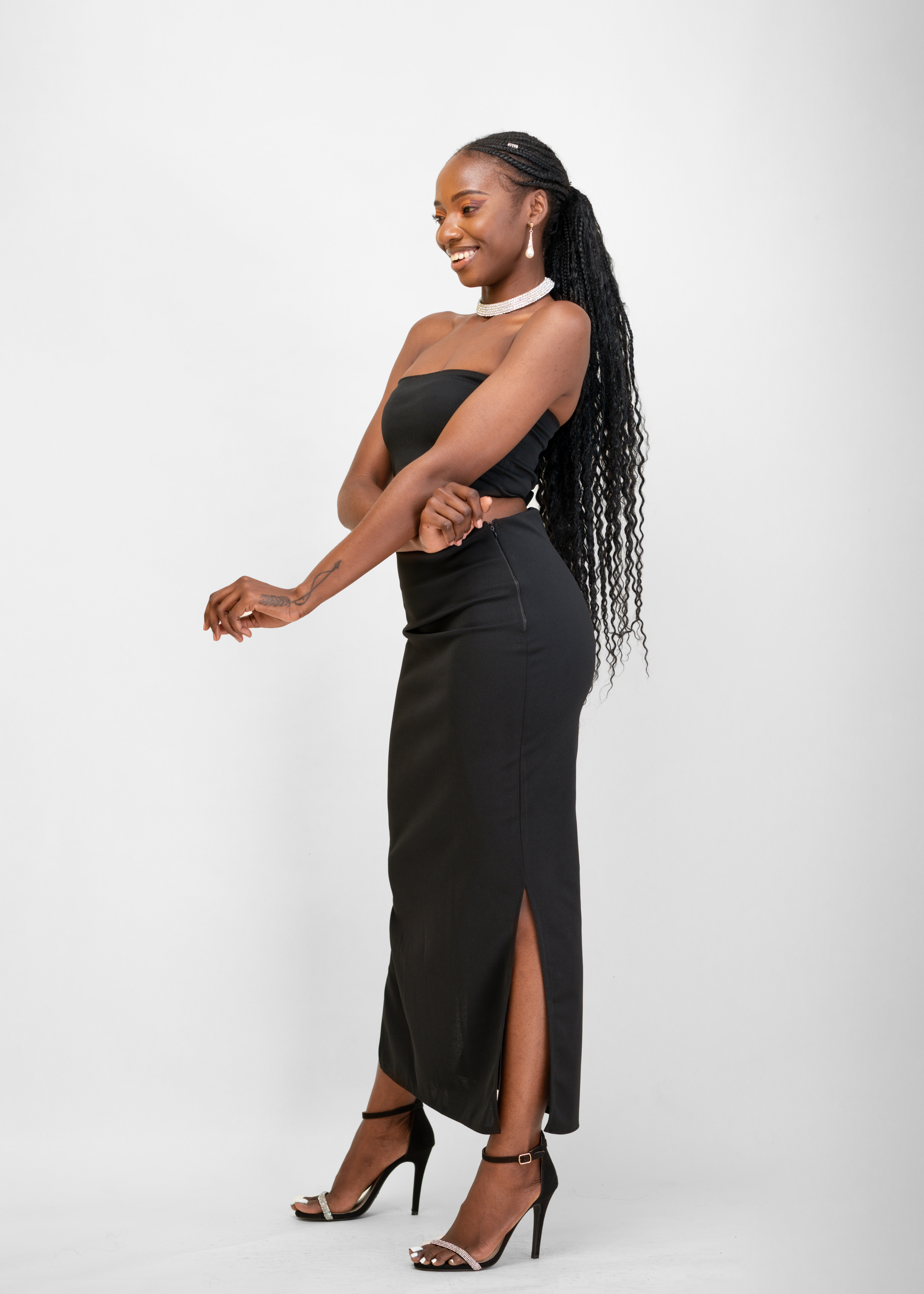Features: strapless tube top, slim fit long skirt with slits on both sides of the skirt. It is a sexy and comfy bodycon design creates a charming silhouette. It will show off your sexy curves and hug you body in all the right places.